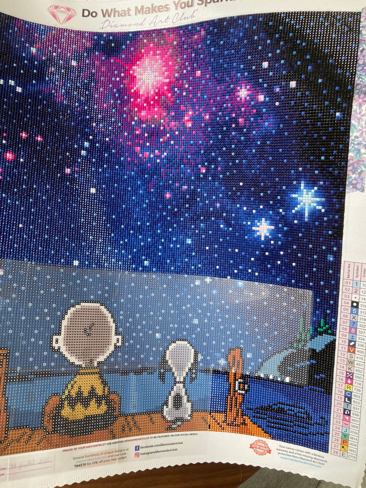 This canvas was perfection. The glue was very sticky and the drills were great quality. I am an avid snoopy fan so I had to get this. It was a blast to work on. I was worried the stars would look pixelated. I person it doesn't. The finish is beautiful.