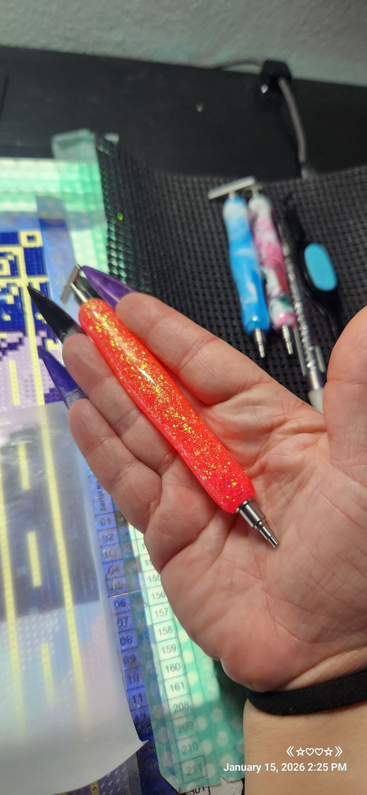 Get ready to sparkle with Diamond Art Club's Twist-On Dual-Threaded Premium Drill Pen in the stunning Sparking Citrus Celebration design! This compact pen, measuring 3.8 inches (approximately 9.6 cm) without tips, offers exceptional control for a more enjoyable diamond painting experience. It boasts two threaded holes, allowing you to easily switch between different tips for ultimate versatility. A metal single placer is included to get you started right away. The dual-threaded design ensures a secure fit that eliminates wobbling for pinpoint placement. Combining function and style, the ergonomic design and eye-catching Sparking Citrus Celebration pattern make this pen perfect for both diamond painting enthusiasts and professionals.