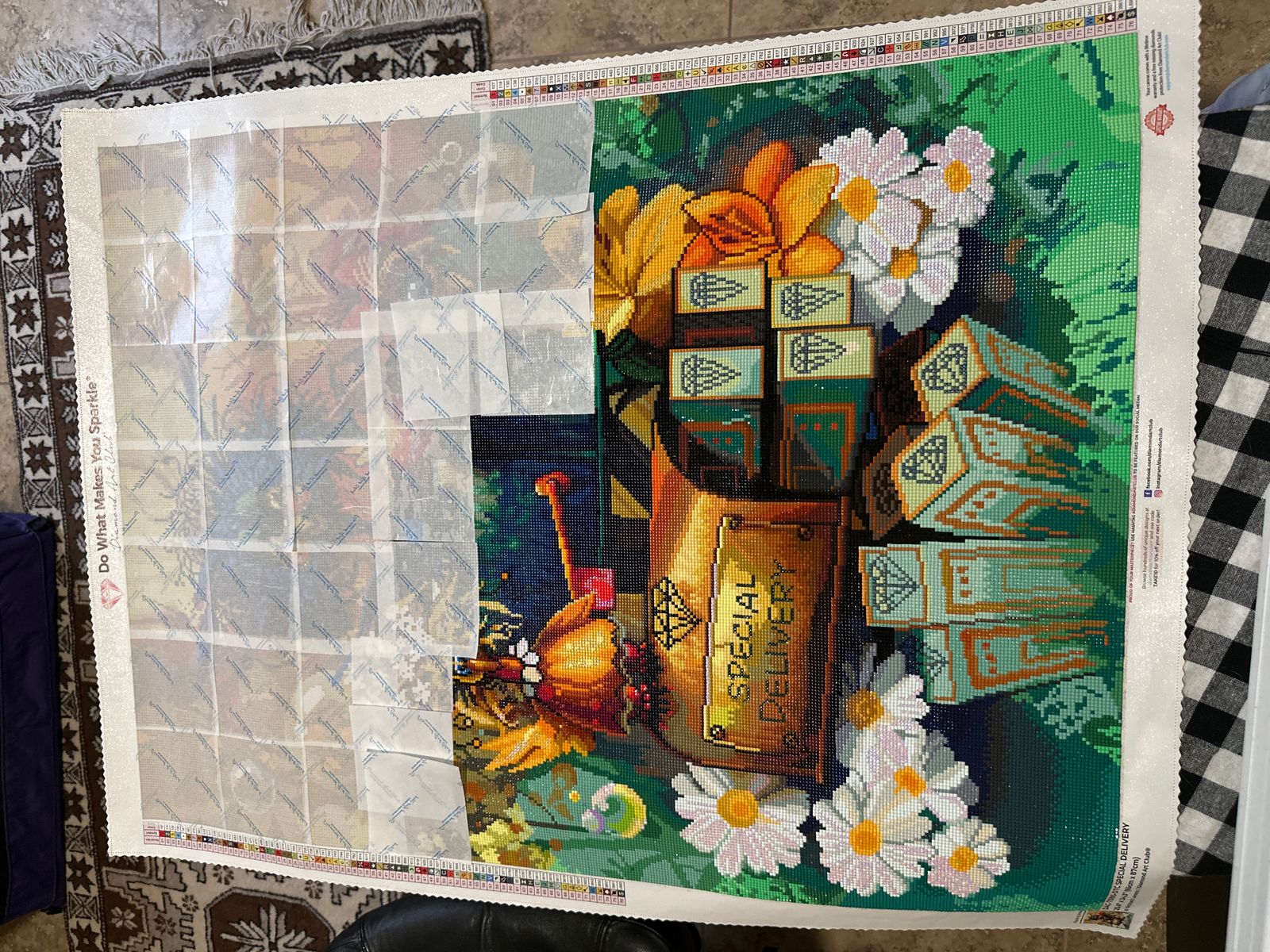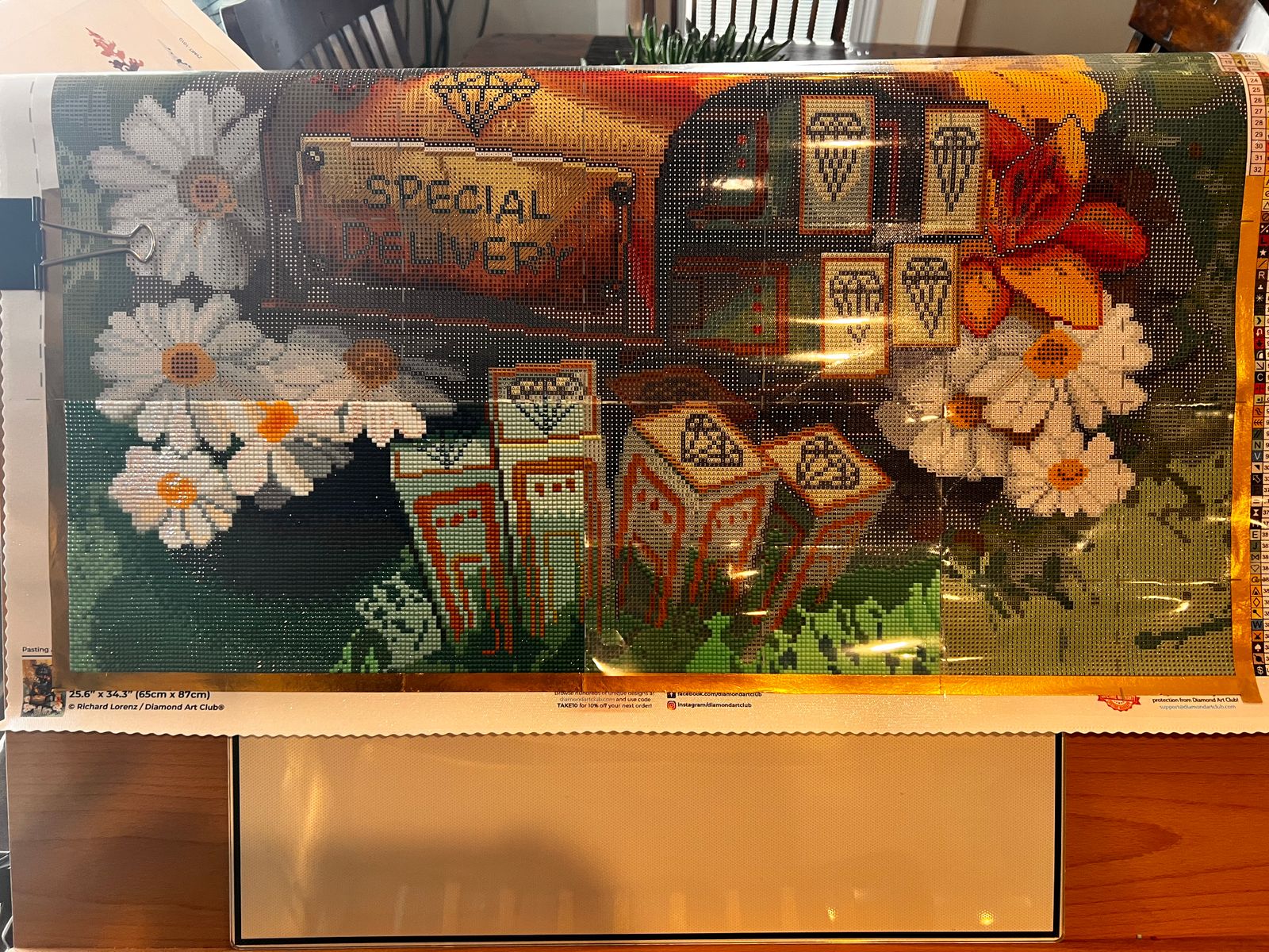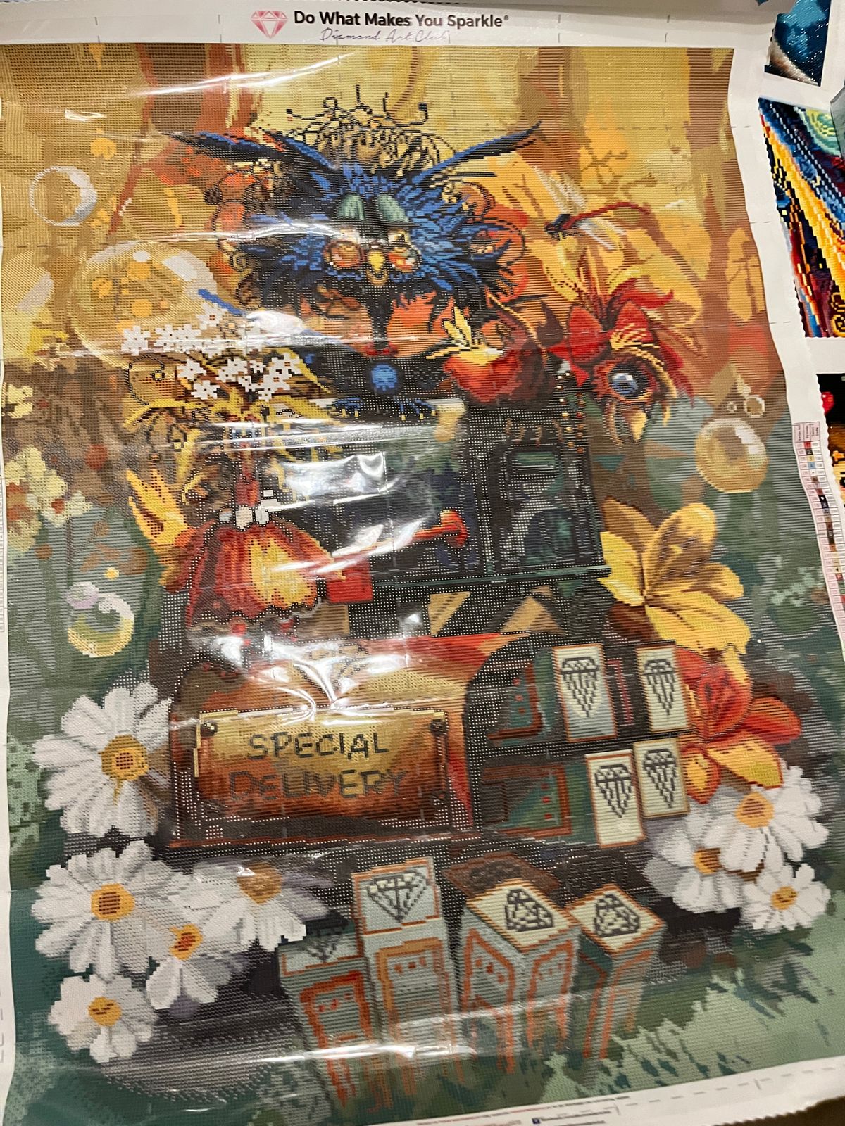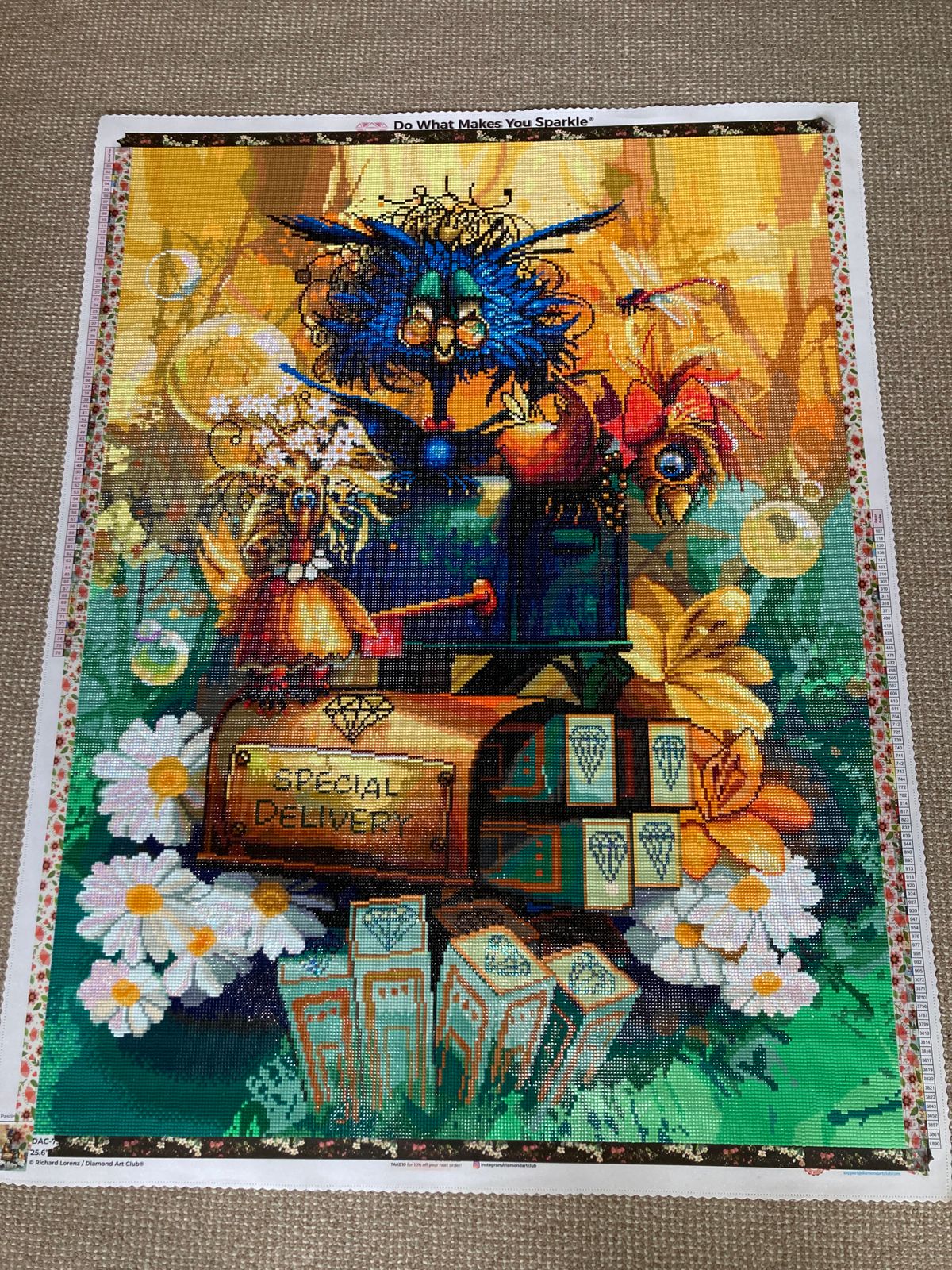 I was so excited to see the rendering of this diamond painting of Special Delivery by Richard Lorenz, it is so colorful and gorgeous and it totally expressed the joy that I get every time that a DAC ORDER is delivered right to my door in days!! Can't wait to start this one after I have finished Richards Bird Mojo that I have finished halfway already . It has been a joy for me to work on!