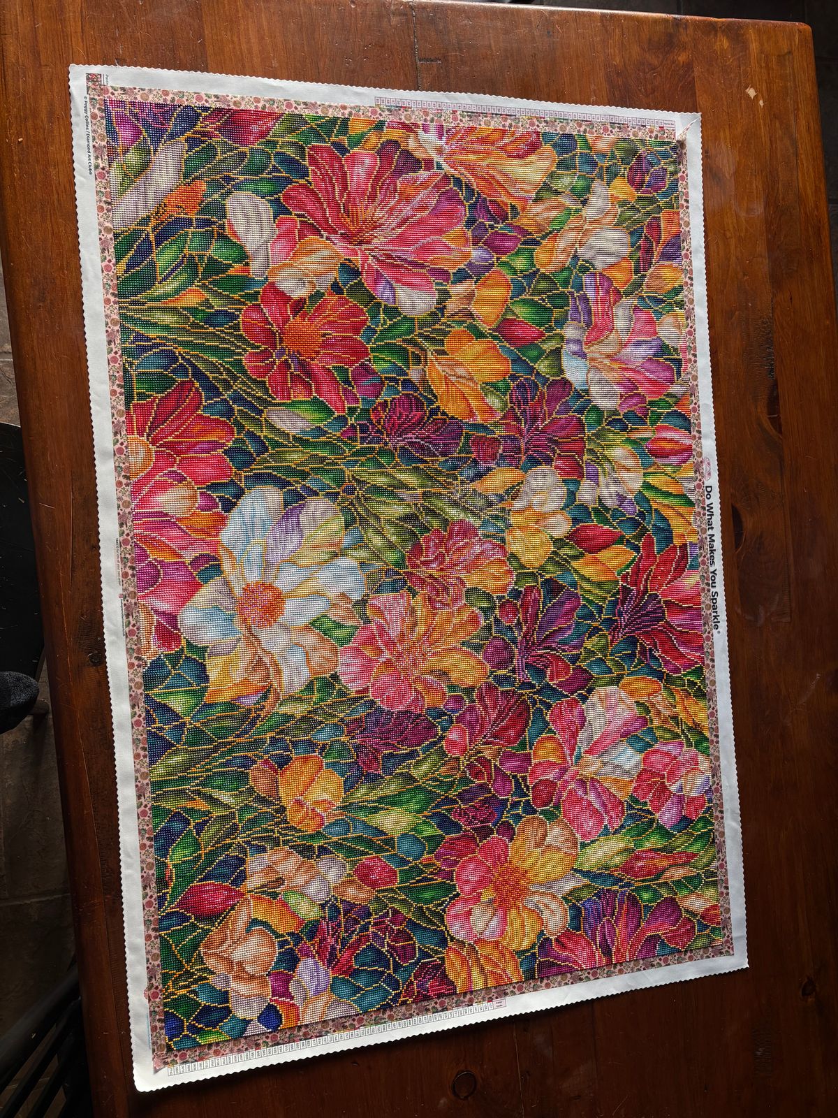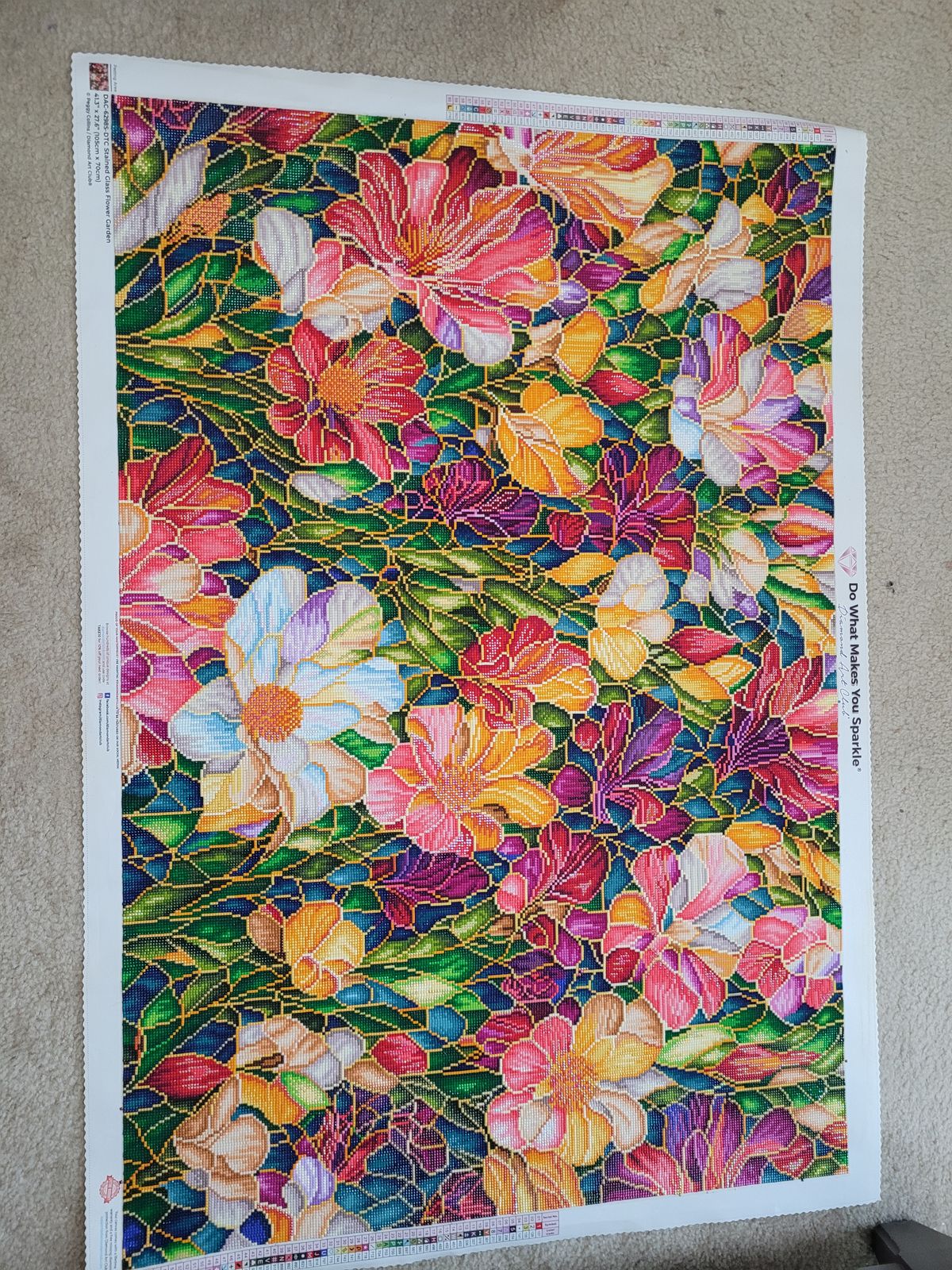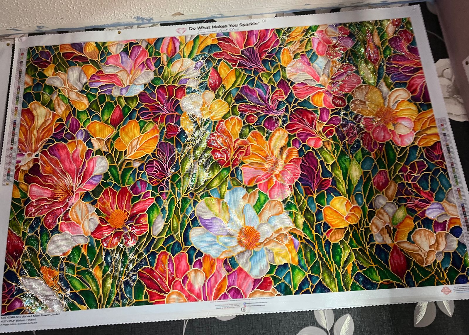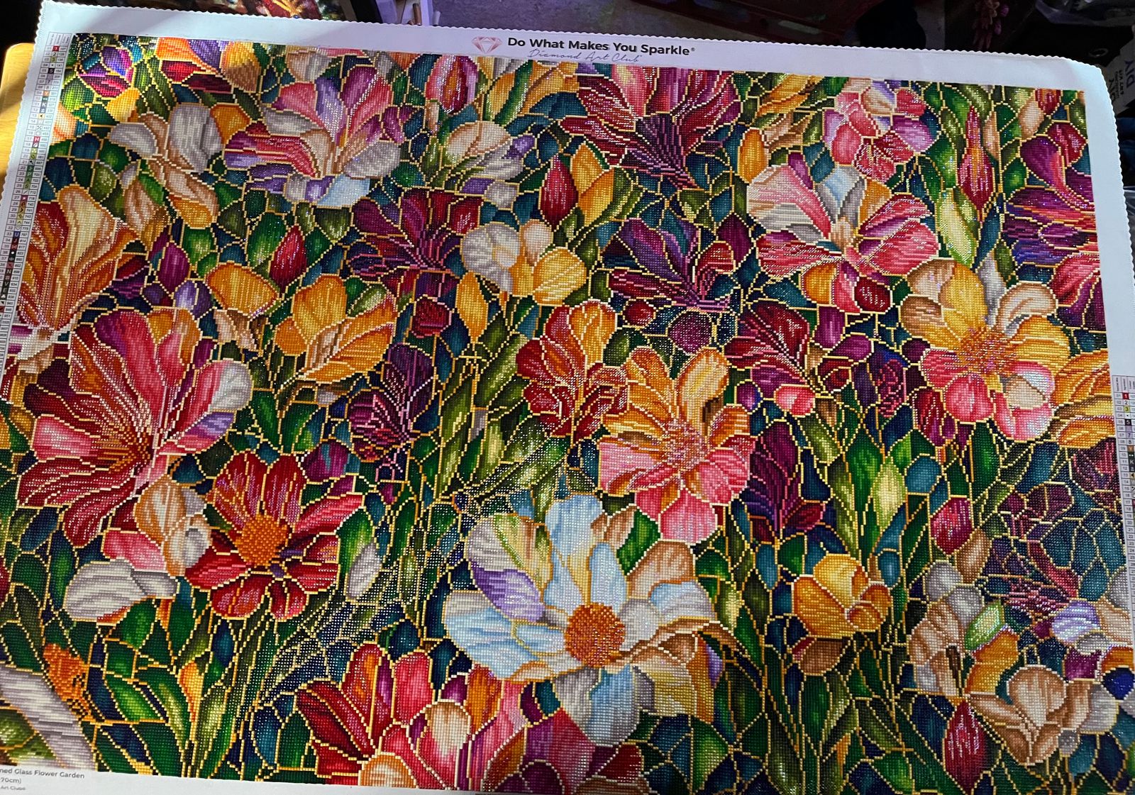 Das Bild ist wie eine fröhliche bunte Blumenwiese. Tolle Farben und dazu die Glasmaloptik. Ein wunderschönes Bild. Sehr zu empfehlen.