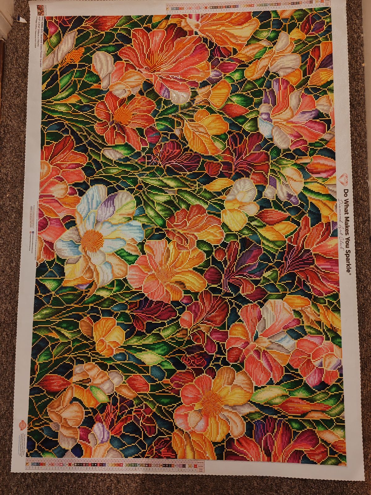 I received this beautiful, stunning canvas last week. I have been working on daily. Love all the colors. I can't wait to hang it when it is completed. It is more beautiful in person than in any picture I am able to take of it.
