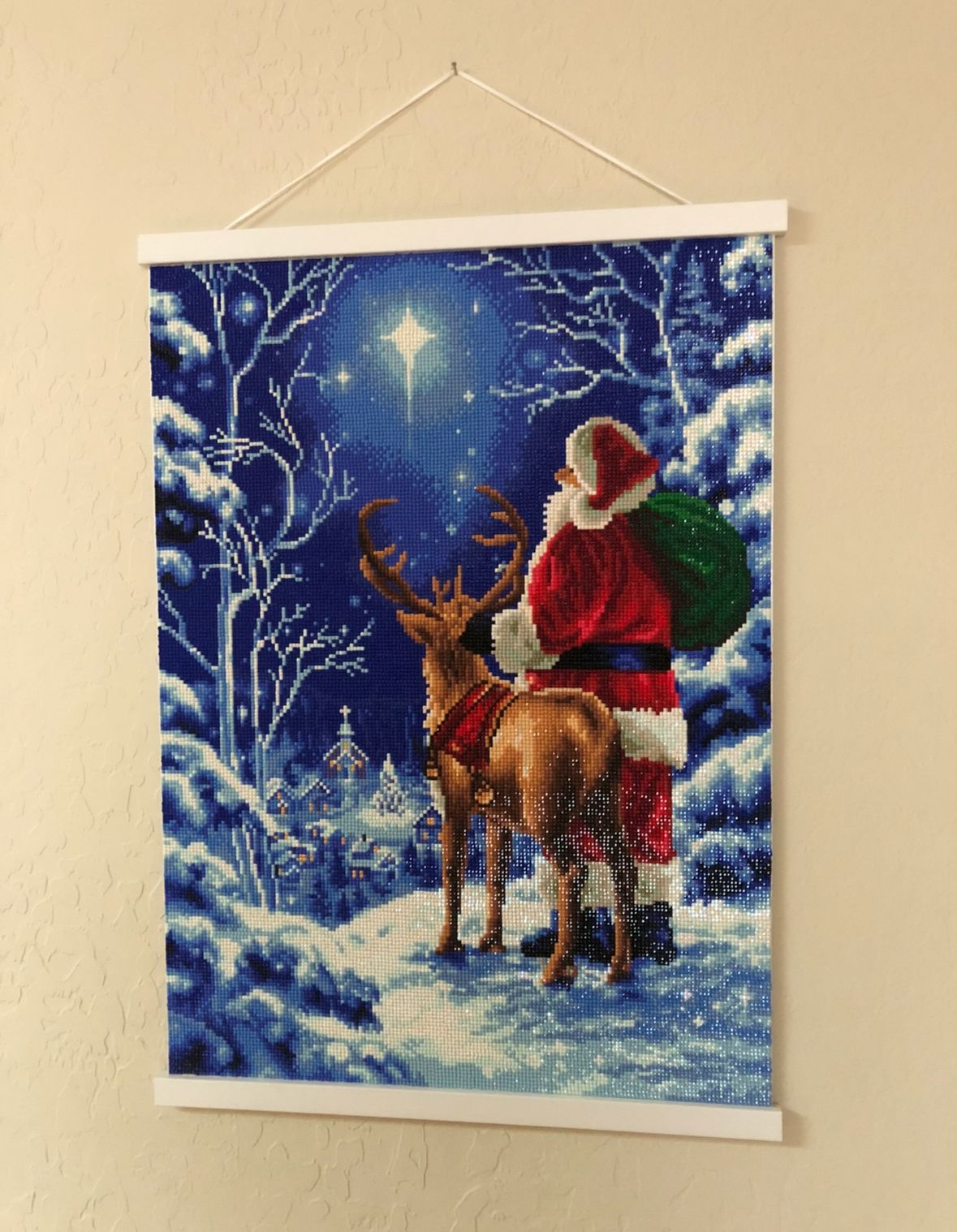 I loved working on this Santa.. I actually completed it in 2022 and every season pull it out to display. I put on a magnetic frame so I can easily roll it back up for storage… still bright and beautiful several years later