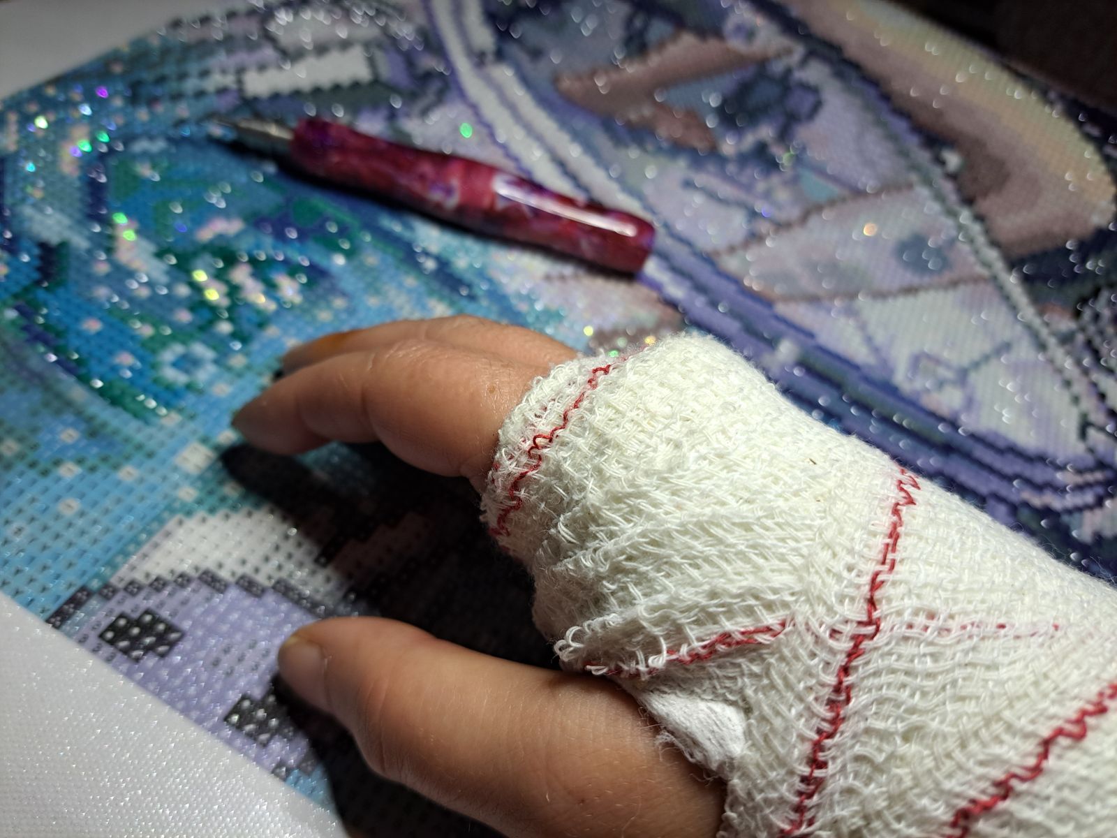 Uno de los lienzos, (sino el que más), que más me gusta y estoy disfrutando de hacer. Es simplemente perfecto, colores vibrantes, es hipnótico. Lástima que un pequeño accidente me esté impidiendo acabarlo .