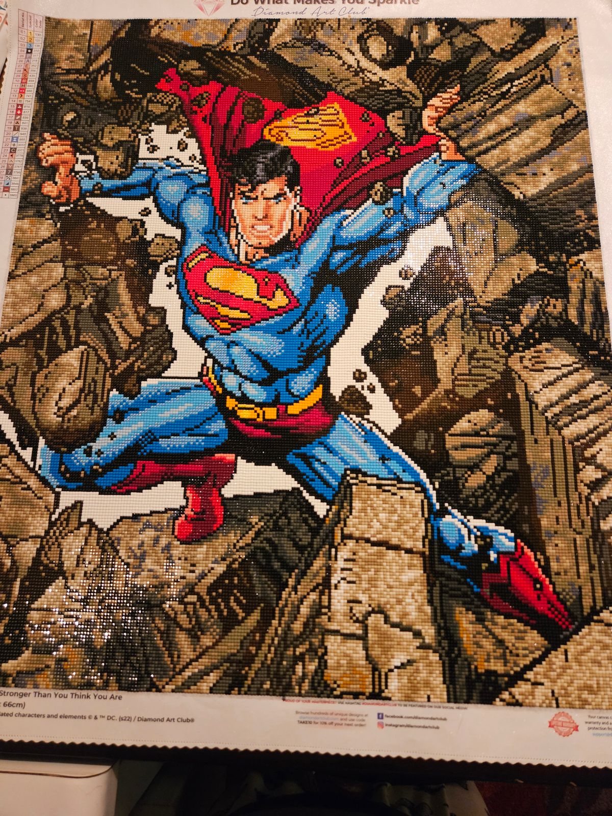 I bought this painting for my son as he has loved Superman since he was a little kid. I wasn't looking forward to working on it because of all the rock colors, but once I started working on it it was a complete joy to do! The detail in the rocks and Superman is AMAZING!! So happy how it turned out and my son loves it!