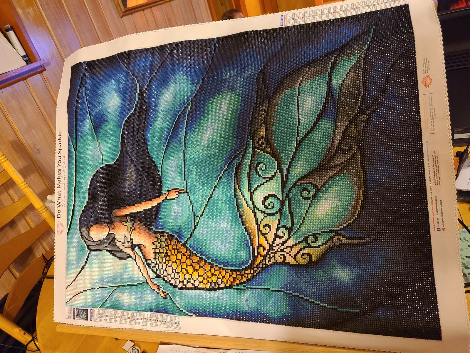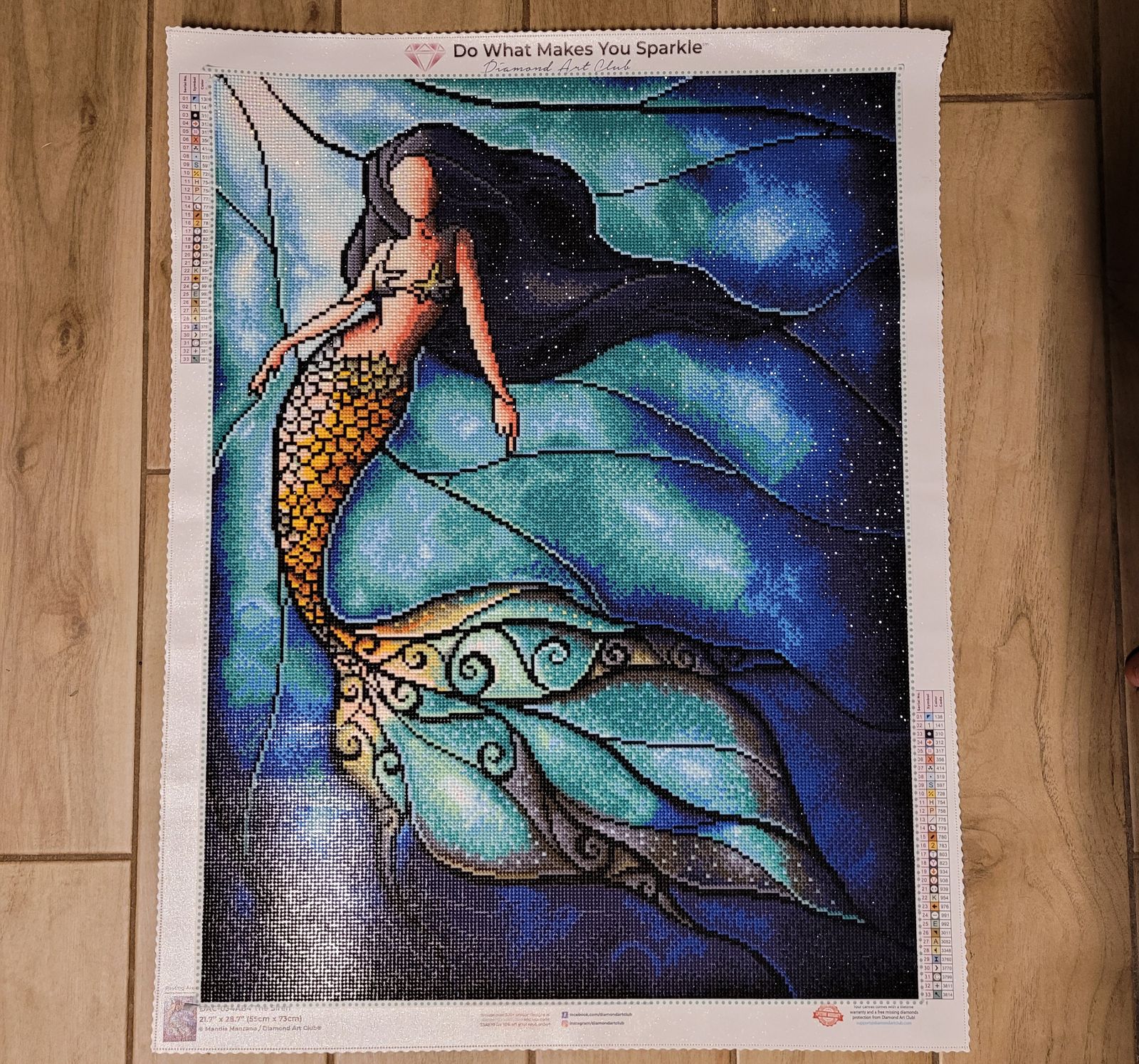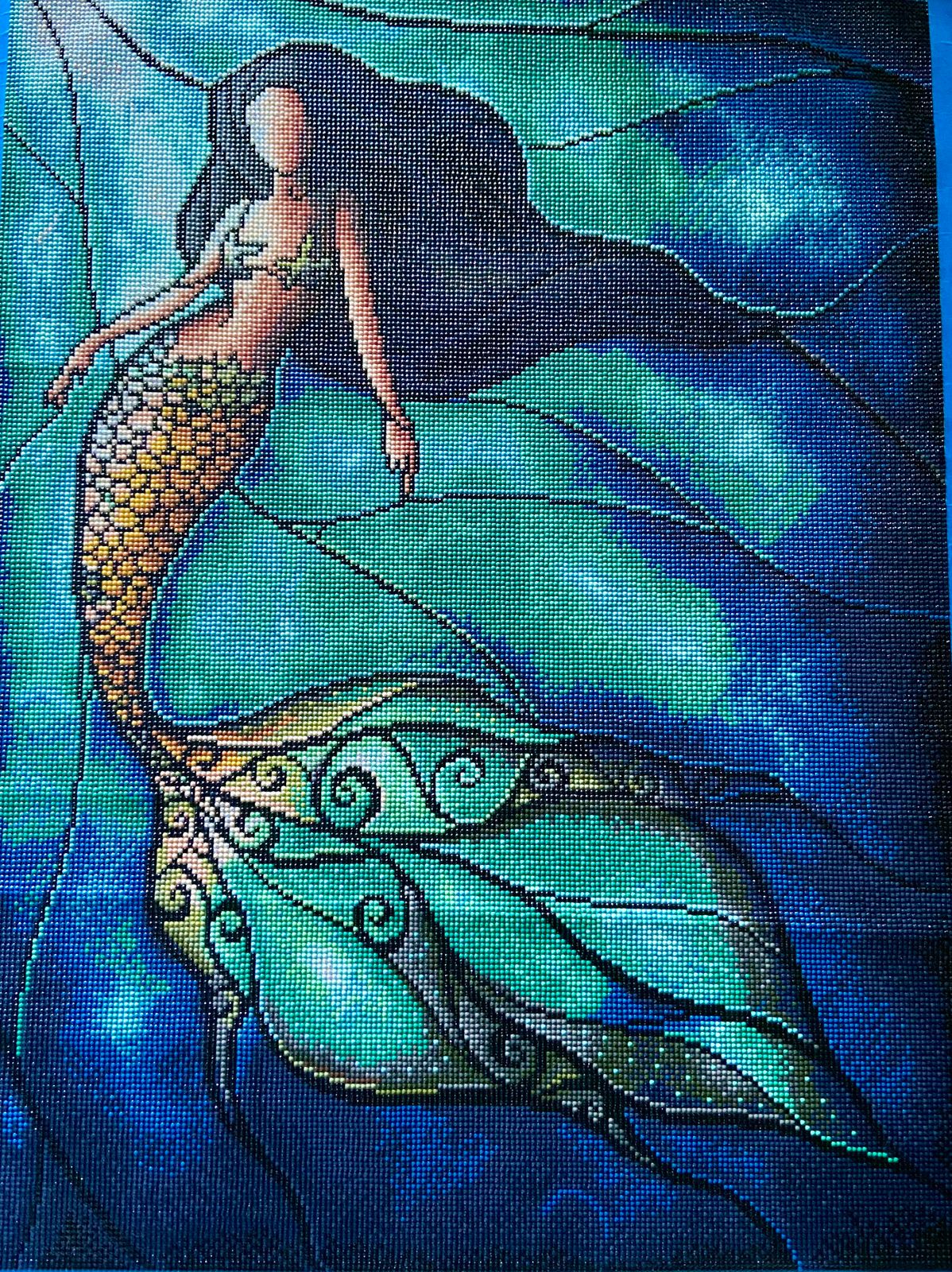 I enjoyed working on this kit. The colors are beautiful, the tail is exquisite. I recommend this painting to any mermaid lover! I participated in a Diamond painting event using this canvas.