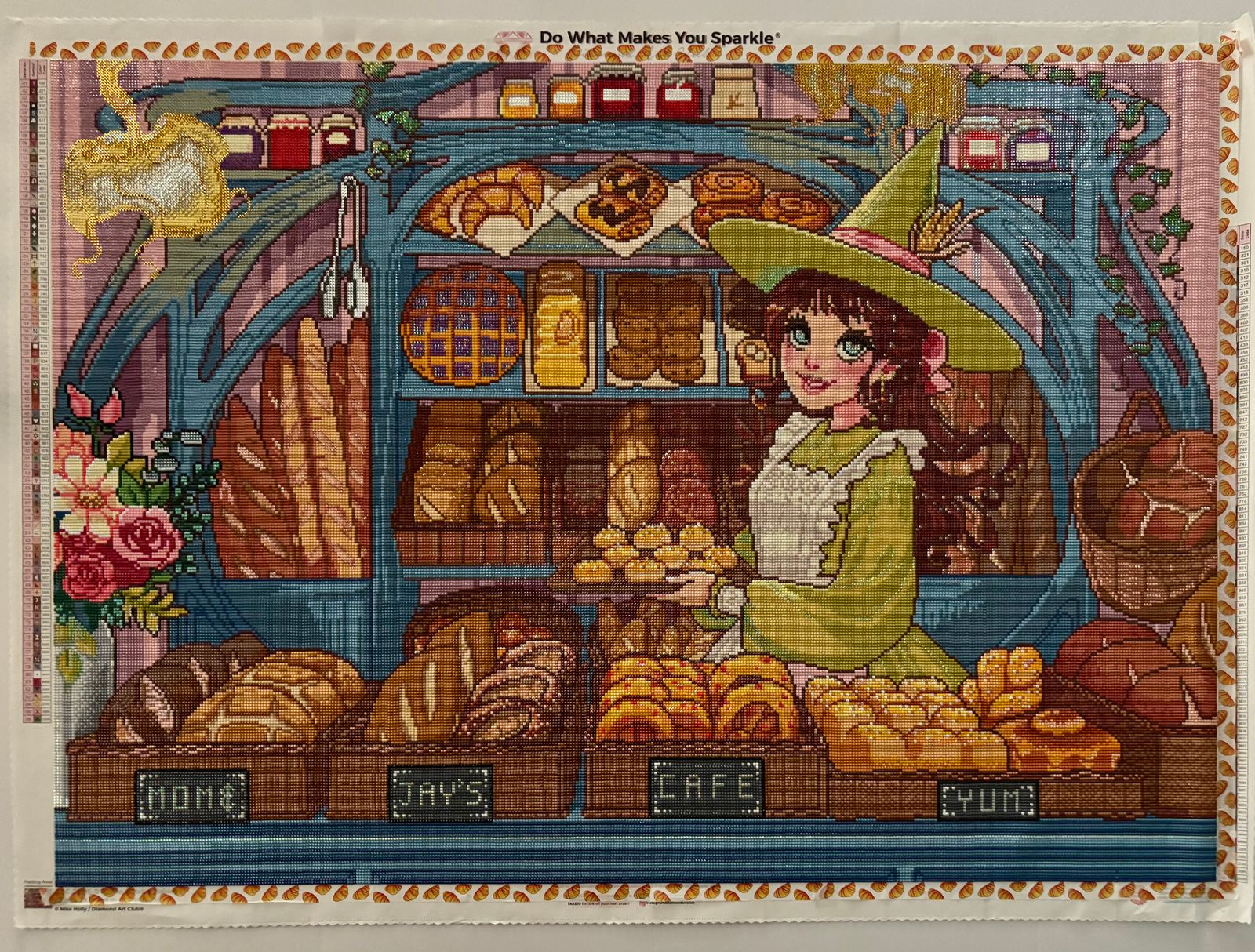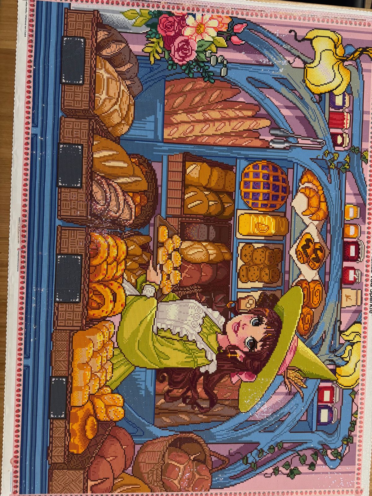 It was so fun to do all of the various baked goods! My son really wanted me to do this so we could put it in our dining room. I customized the chandelier and put some bling here and there. But the most important was I put my son’s name in the box with some glow drills. I wanted to put bakery but it was too long to spell, so I just put cafe, lol. 🤭