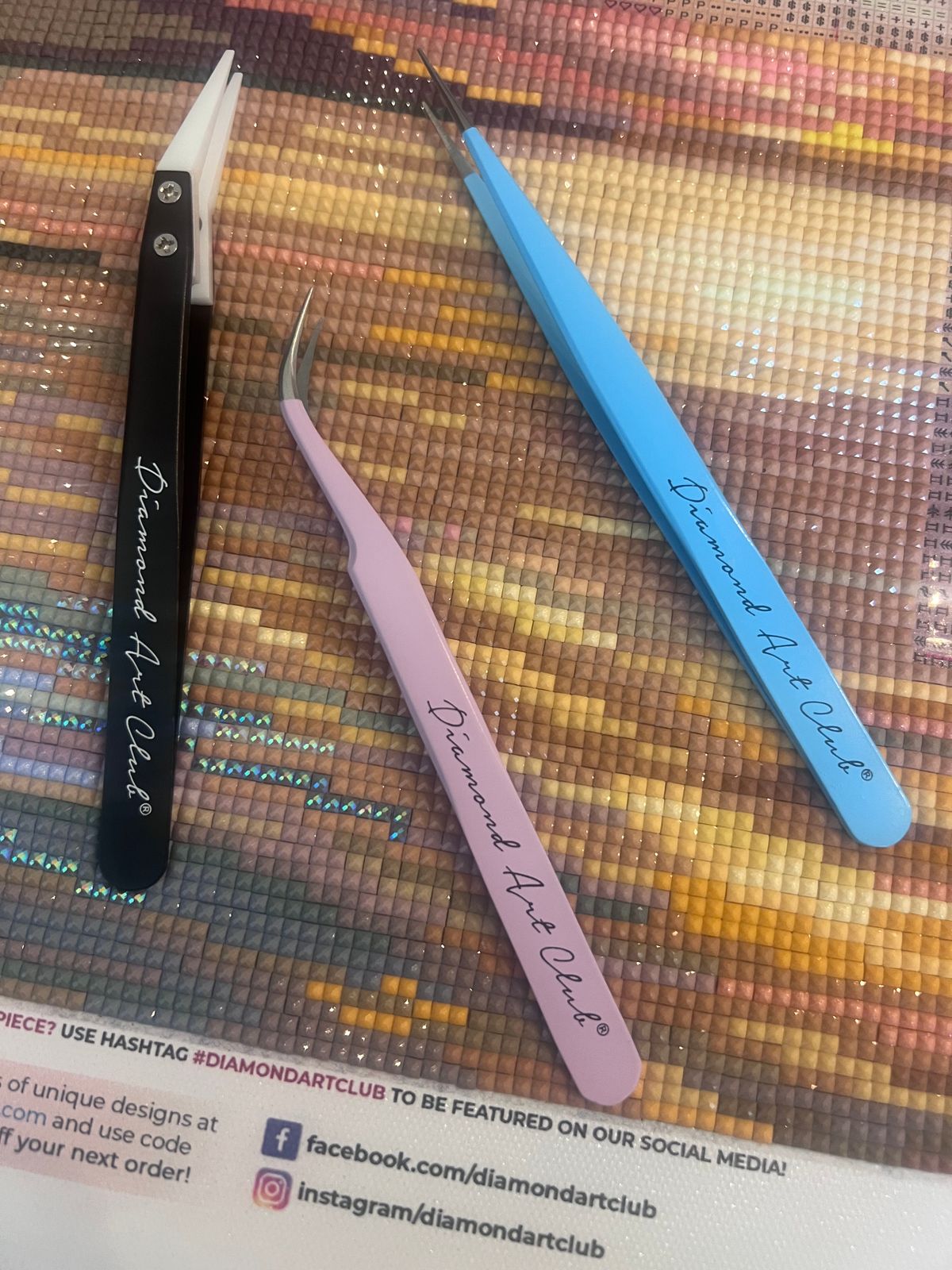 Meet all your diamond painting needs with this versatile set of three precision tweezers. Each tweezer is designed to improve accuracy, comfort, and efficiency.