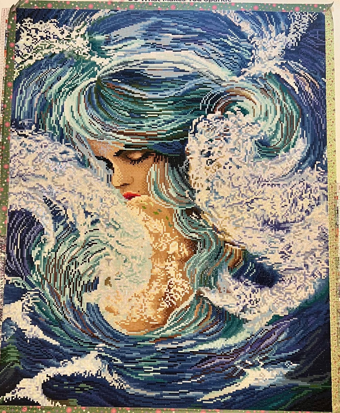 I love this canvas so much. This has been part of my stash for quite a while now and I’m so happy I finally worked on it. The color theme is beautiful and I love the waves. So so pretty!