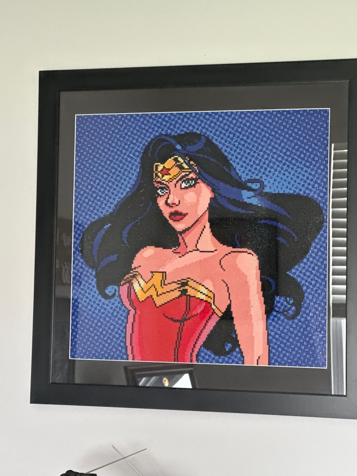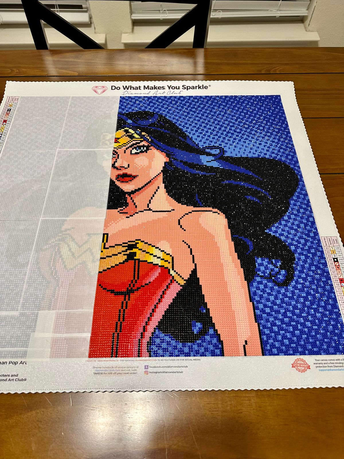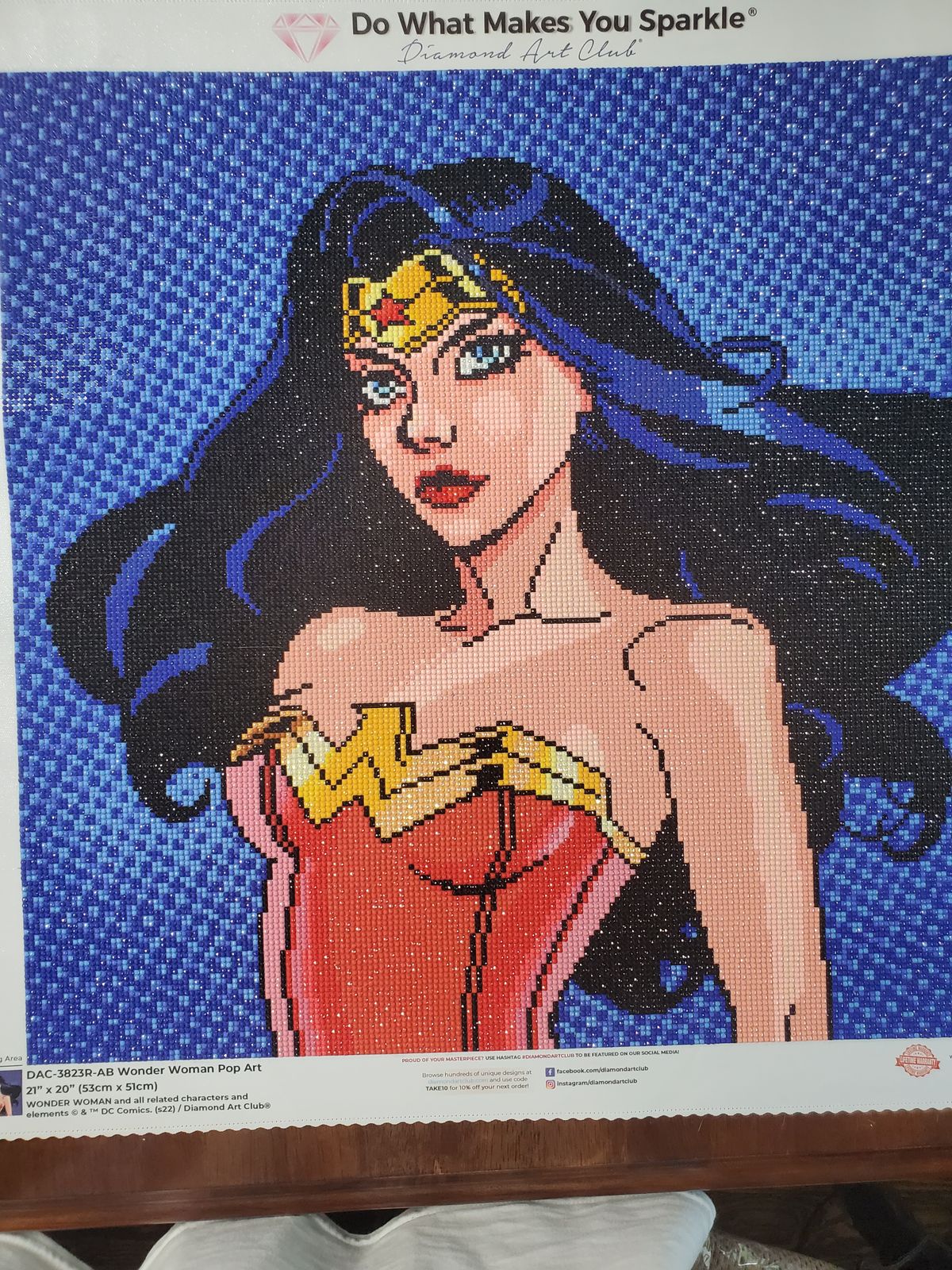 I have been a huge fan of Wonder Woman since I was a little girl. As soon as I saw this on the Diamond Art website I just knew I had to have it. I just recently finished this and can't wait to have this framed ! It turned out so nice that the picture really doesn't do it any justice..