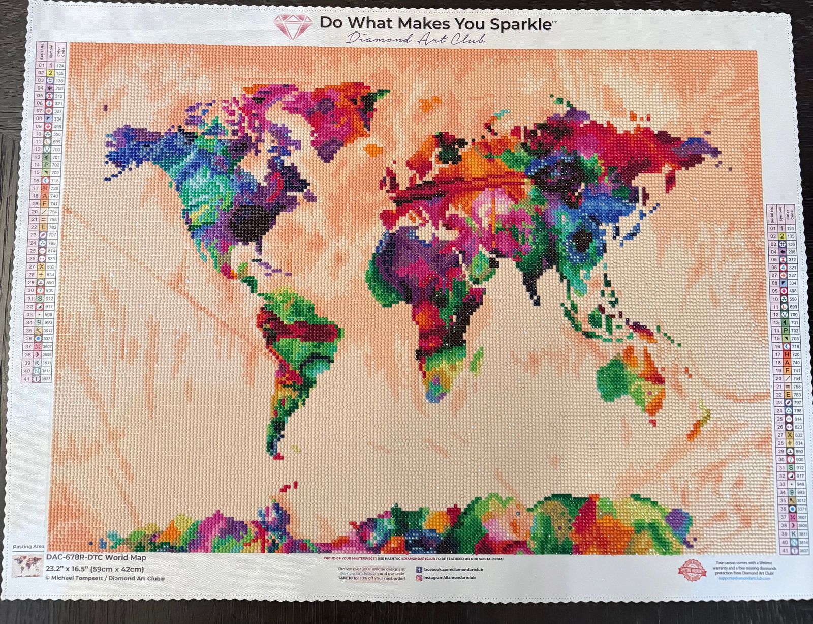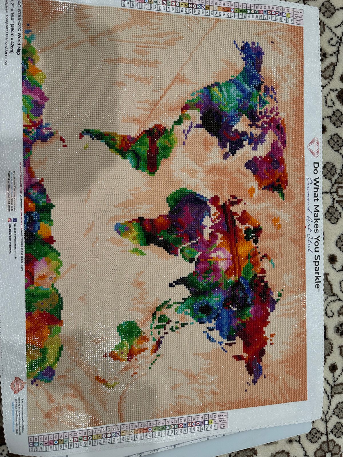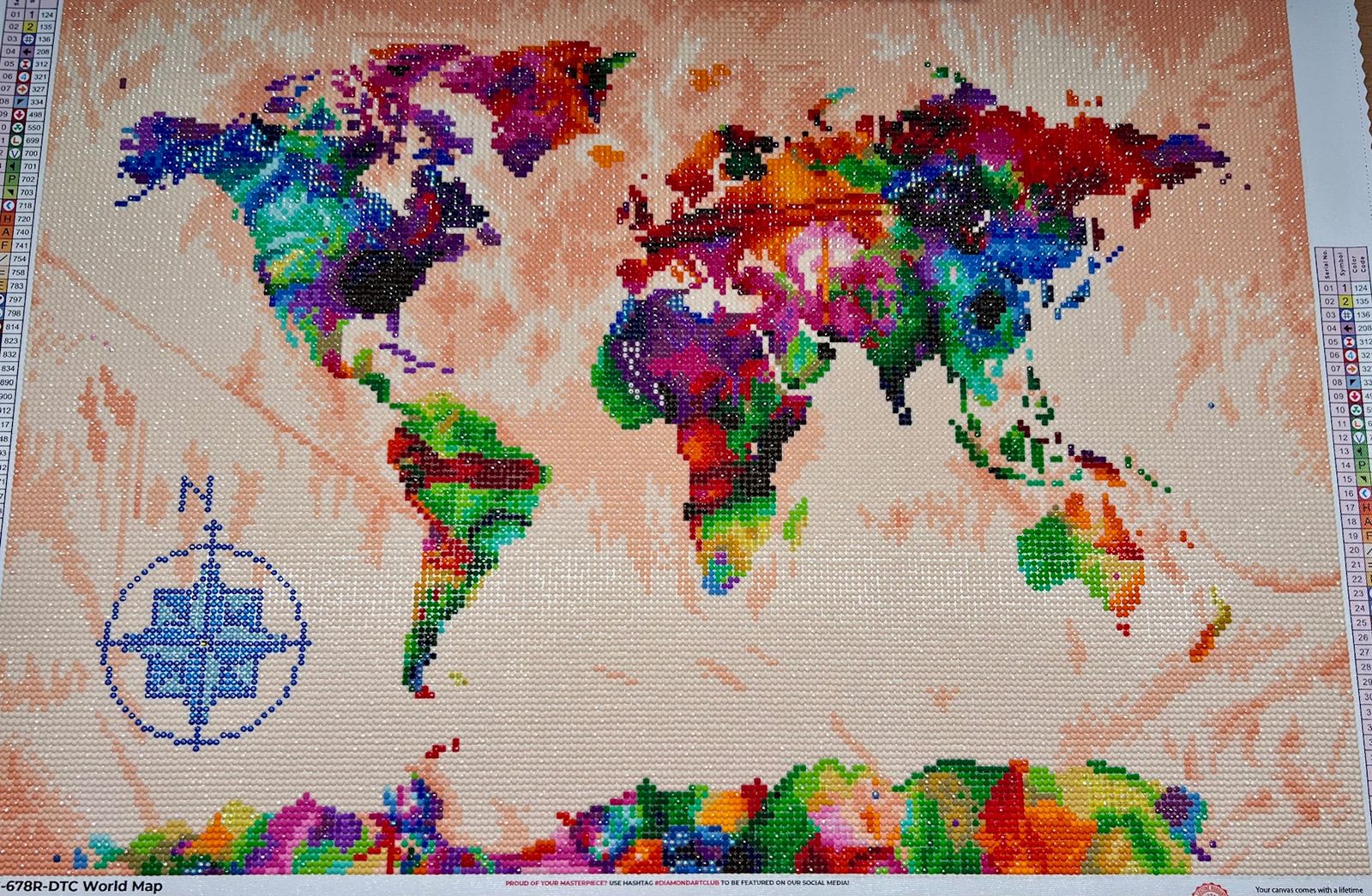 Keep the world at your finger tips by traveling the 7 continents at your leisure with this dazzling diamond art painting of all the Earth's countries. Great for both the home and office.