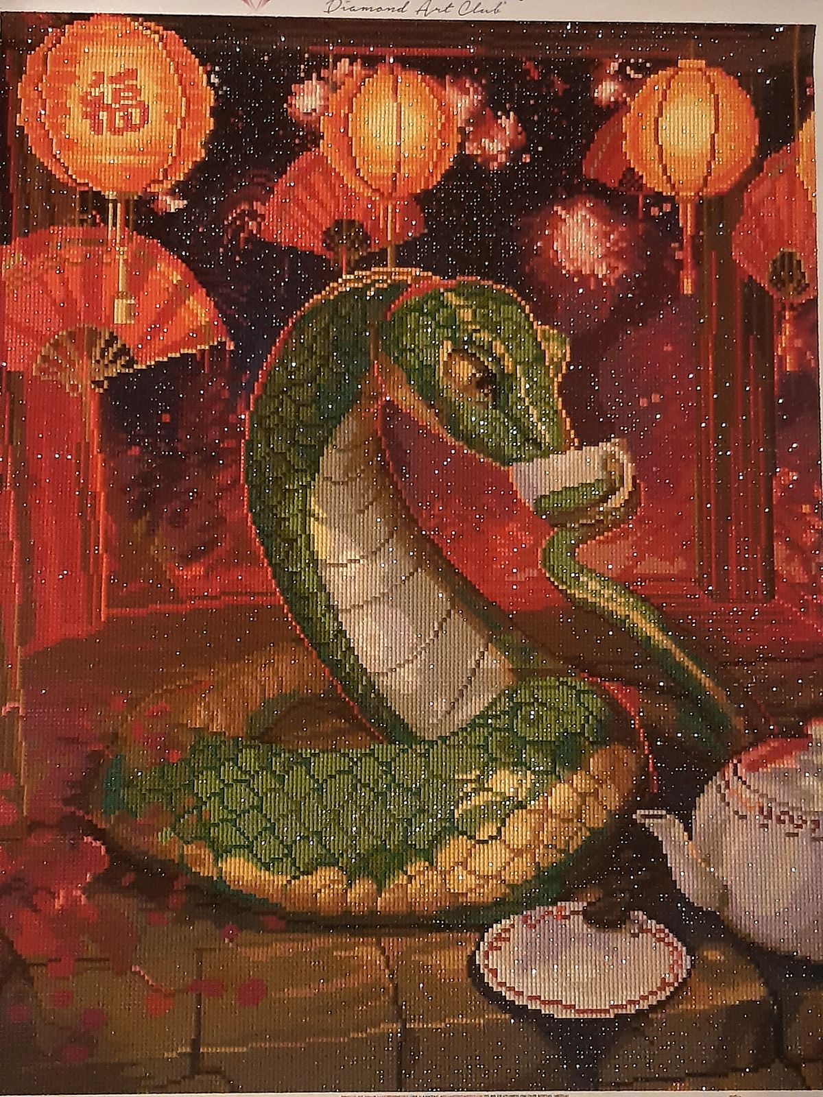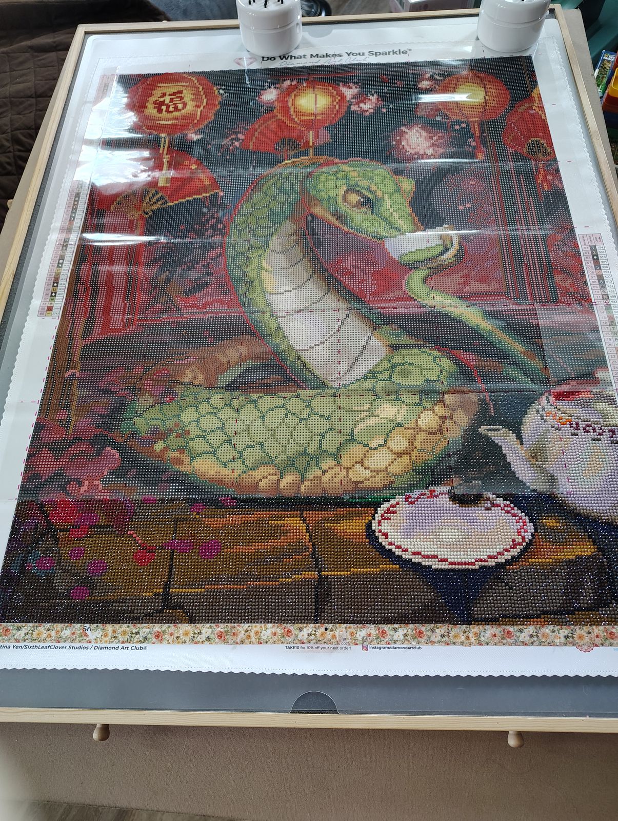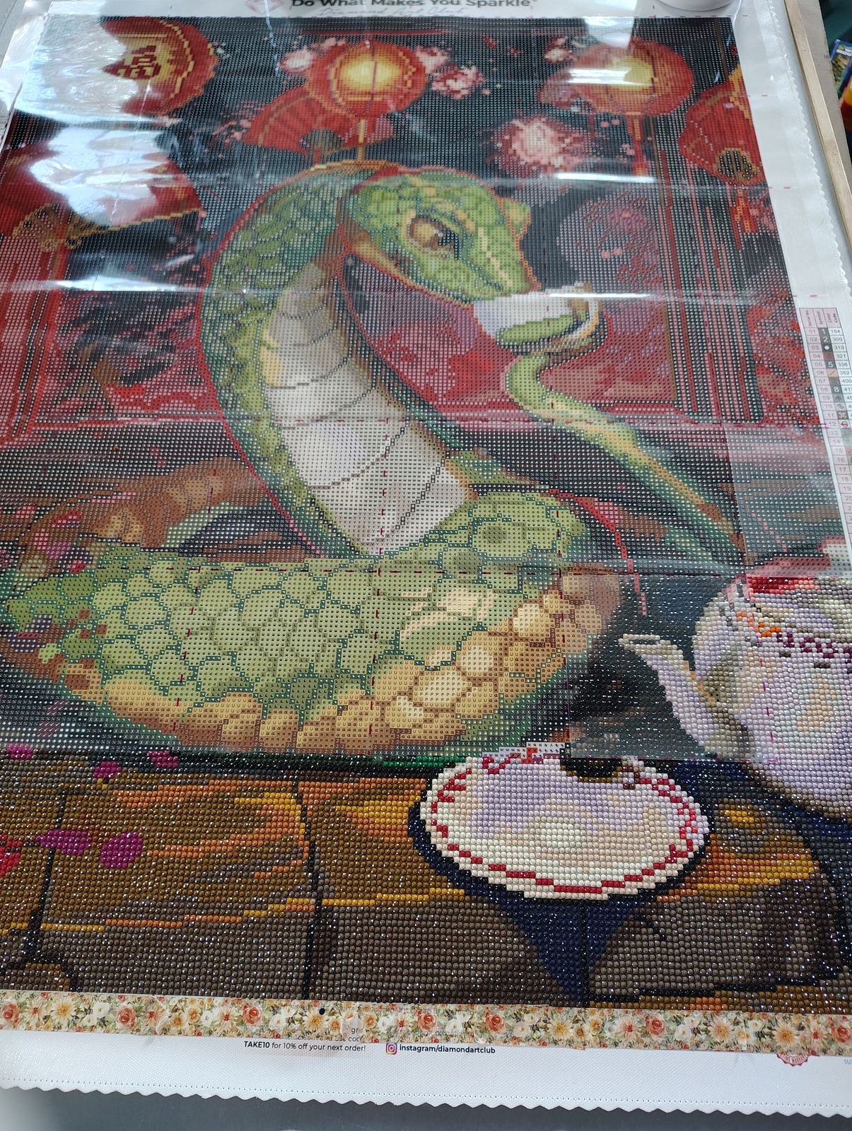 I’m slow so I’m still plugging away but I’ve loved this canvas so far. My mom was born the year of the snake so it’s been nice having this to work on after she passed. I’ve had some doubts about the colors but I’ve been happy with the effect every time I’ve taken a step back so I’m trusting the process. Also pleasantly surprised how well the rounds are working, I’m used to them being terrible in unbranded kits so I also didn’t buy this since it wasn’t square.