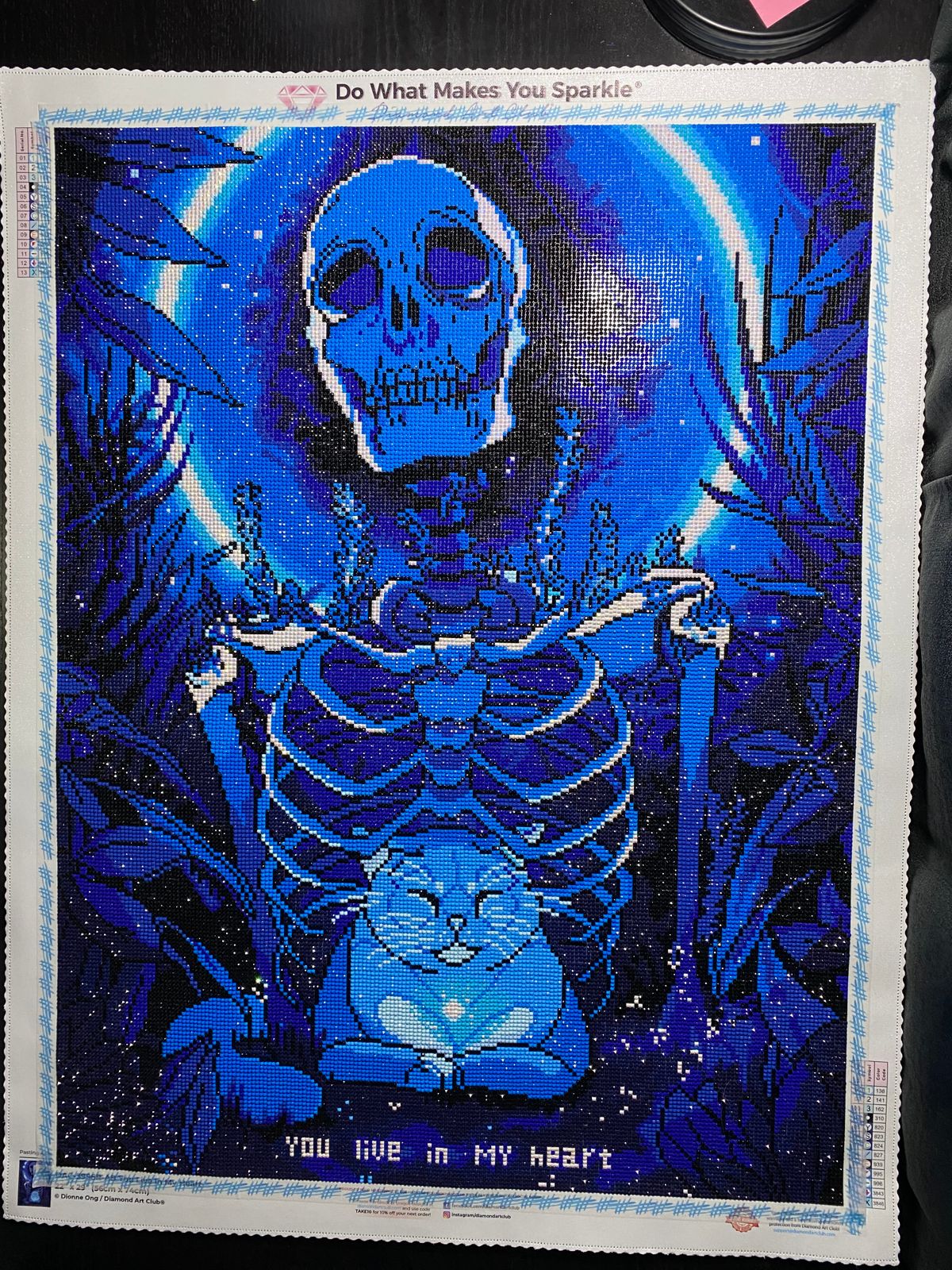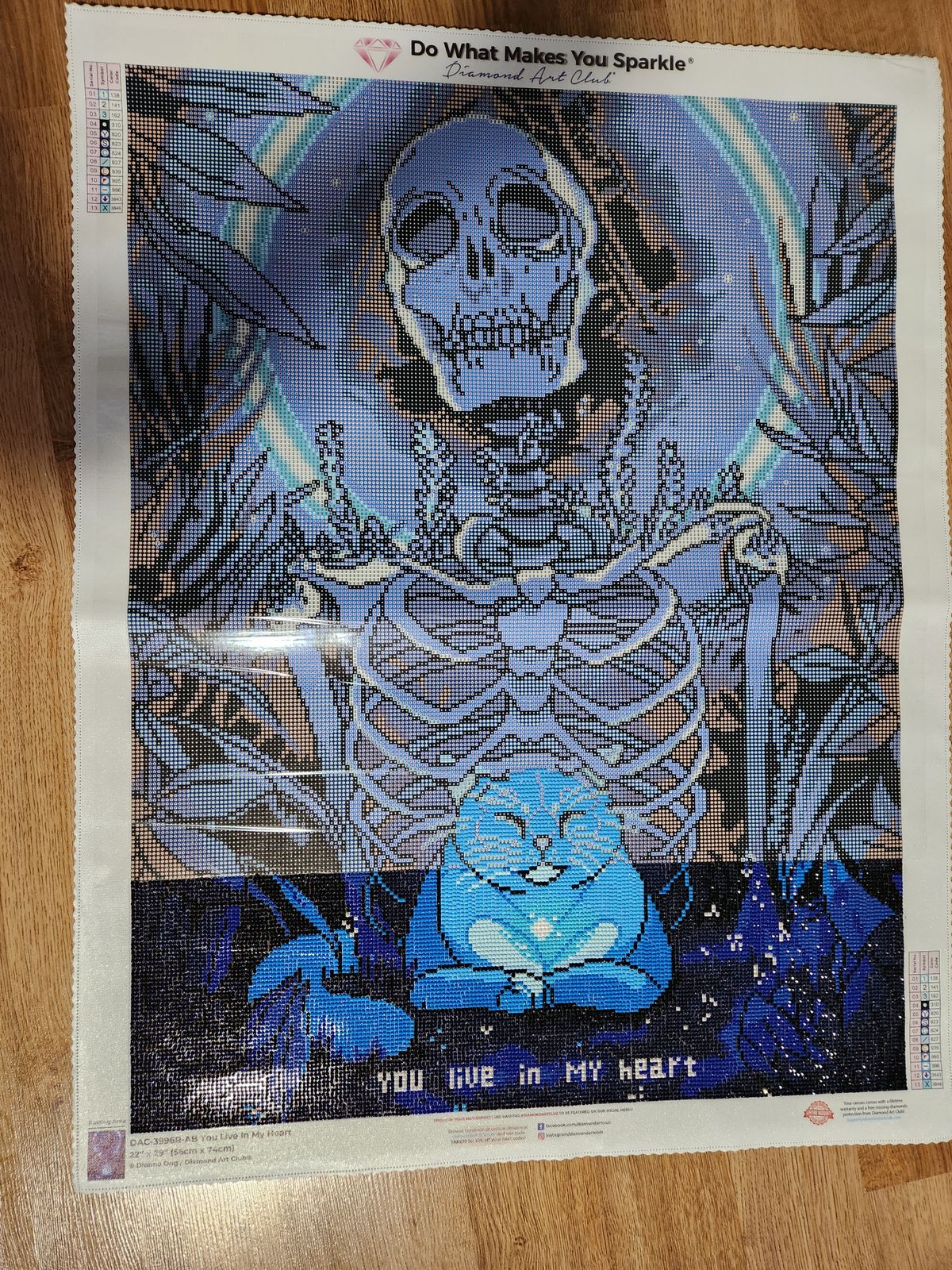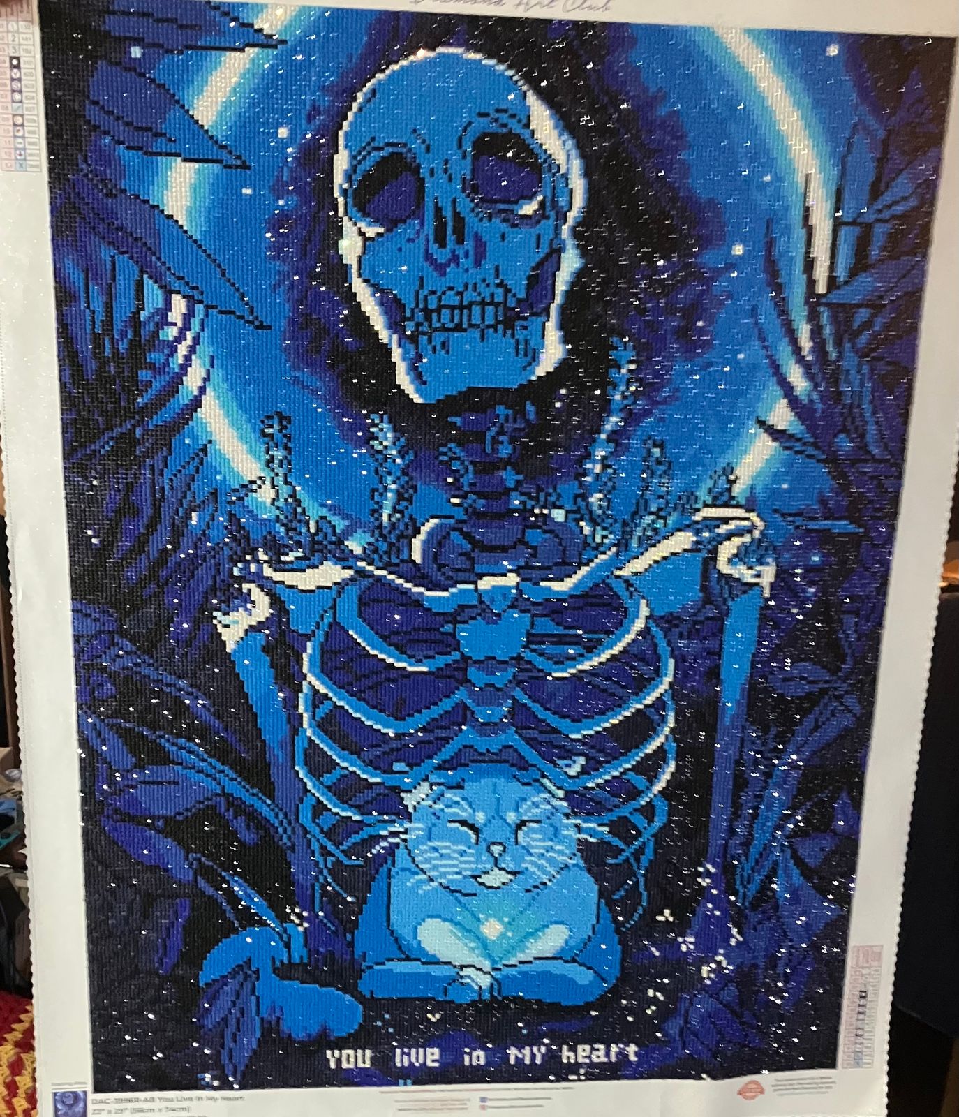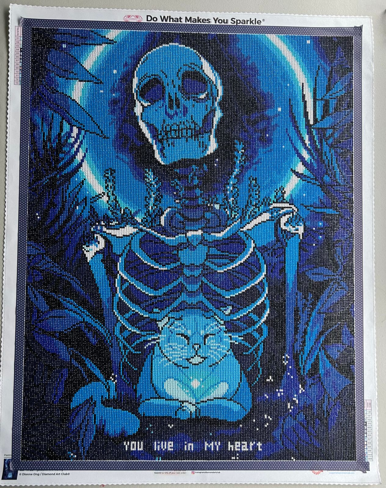 I purchased this one solely for the purpose to do it as a memory tribute to my white cat, Lady who passed away. I’m usually not the one into skeletons and such but this one was captivating and I love the symbolism. Once again, came out beautifully even for not having that many colors.