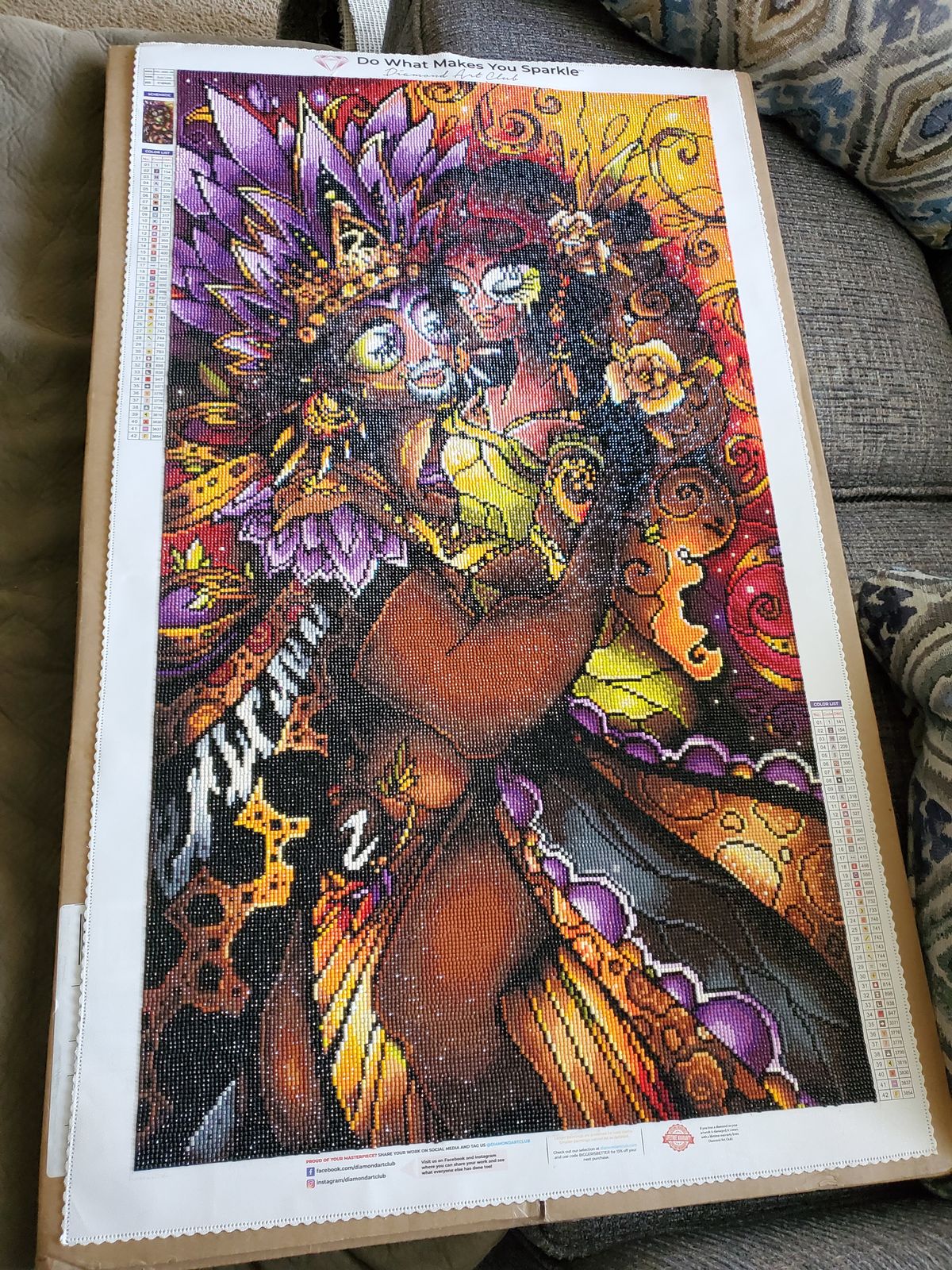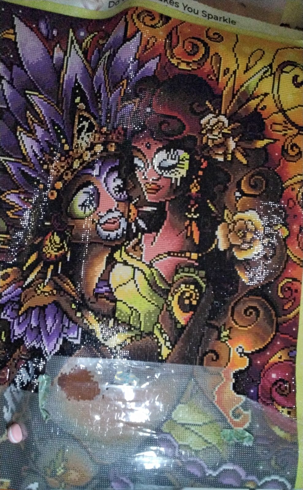 Mandie Manzano es una gran artista, sus pinturas describen perfectamente el tema, en este caso es el amor, su tècnica me encanta y DAC como siempre hizo un optimo trabajo con la tela y los diamantes, aunque si algunos diamantes estan mezclados con los antiguos y los nuevos pero con muchìsima paciencia los estoy separando para que la pintura quede homogènea y no con escalones y espacios por la diferencia. Me demoro mas pero el trabajo queda fabuloso por lo que se yà que cuando este terminado me encantarà como todo lo que he hecho. Me estoy disfrutando completamente todo el proceso creativo. Gracias DAC por esta magnìfica pintura!!🥰💖💘
